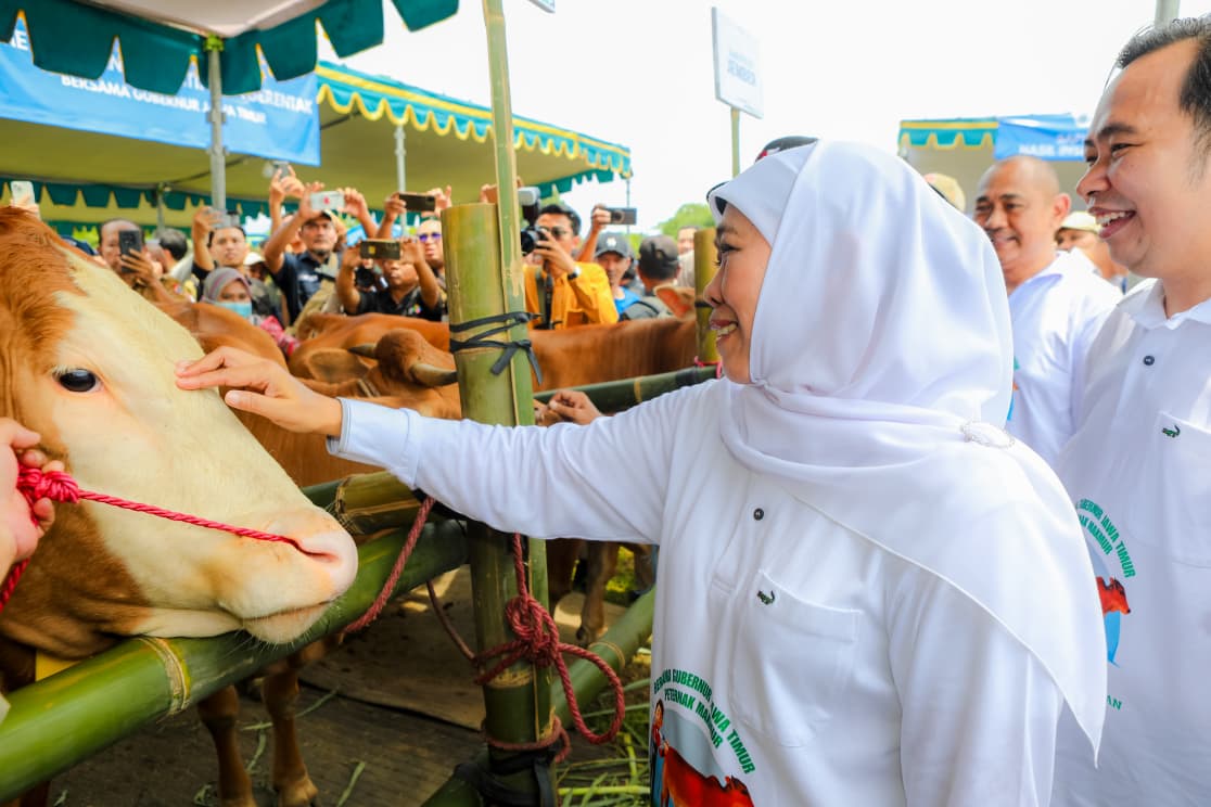 Gubernur Khofifah menyebut Jawa Timur patut bersyukur neraca kebutuhan dan ketersediaan produk peternakan menunjukkan angka surplus meskipun secara nasional masih terdapat defisit pada komoditas daging sapi dan susu.