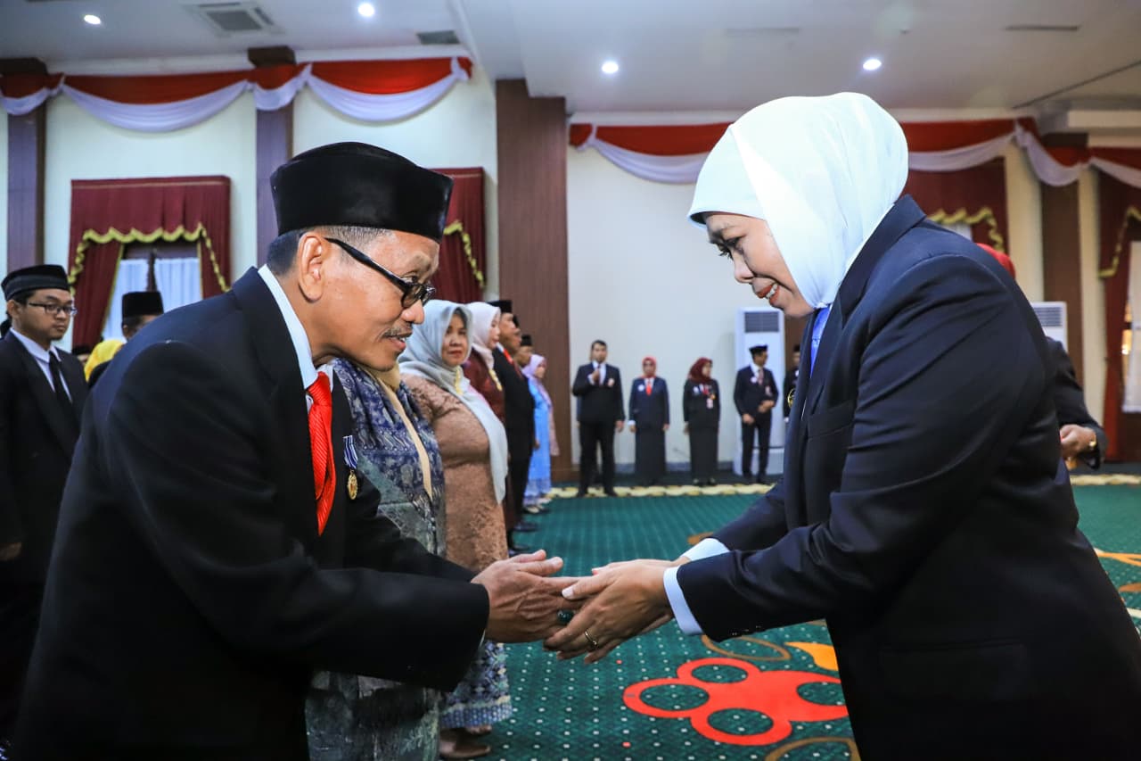 Dalam sambutannya, Gubernur Khofifah menyampaikan ucapan selamat dan apresiasi kepada seluruh ASN penerima penghargaan. Ia menegaskan bahwa tanda kehormatan ini merupakan bentuk pengakuan langsung dari negara atas dedikasi dan kerja keras ASN Jawa Timur.
