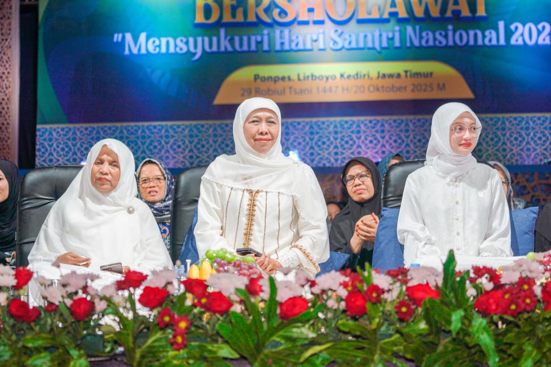 Gubernur Jawa Timur Khofifah Indar Parawansa menghadiri gelaran Lirboyo Bersholawat yang dipimpin oleh Habib Syech bin Abdul Qadir Assegaf dalam rangka Mensyukuri Hari Santri di Pondok Pesantren Lirboyo, Kota Kediri, Senin (20/10) malam.