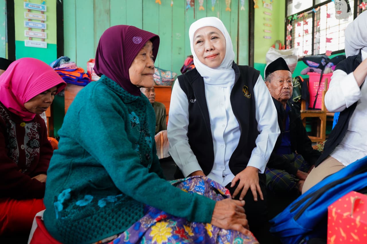 Gubernur Khofifah menyempatkan diri berbincang dengan masyarakat dan bertanya perihal kebutuhan apa yang perlu dipenuhi. Kepada anak-anak yang hadir, ia membagikan paket mainan yang dapat menghibur mereka.