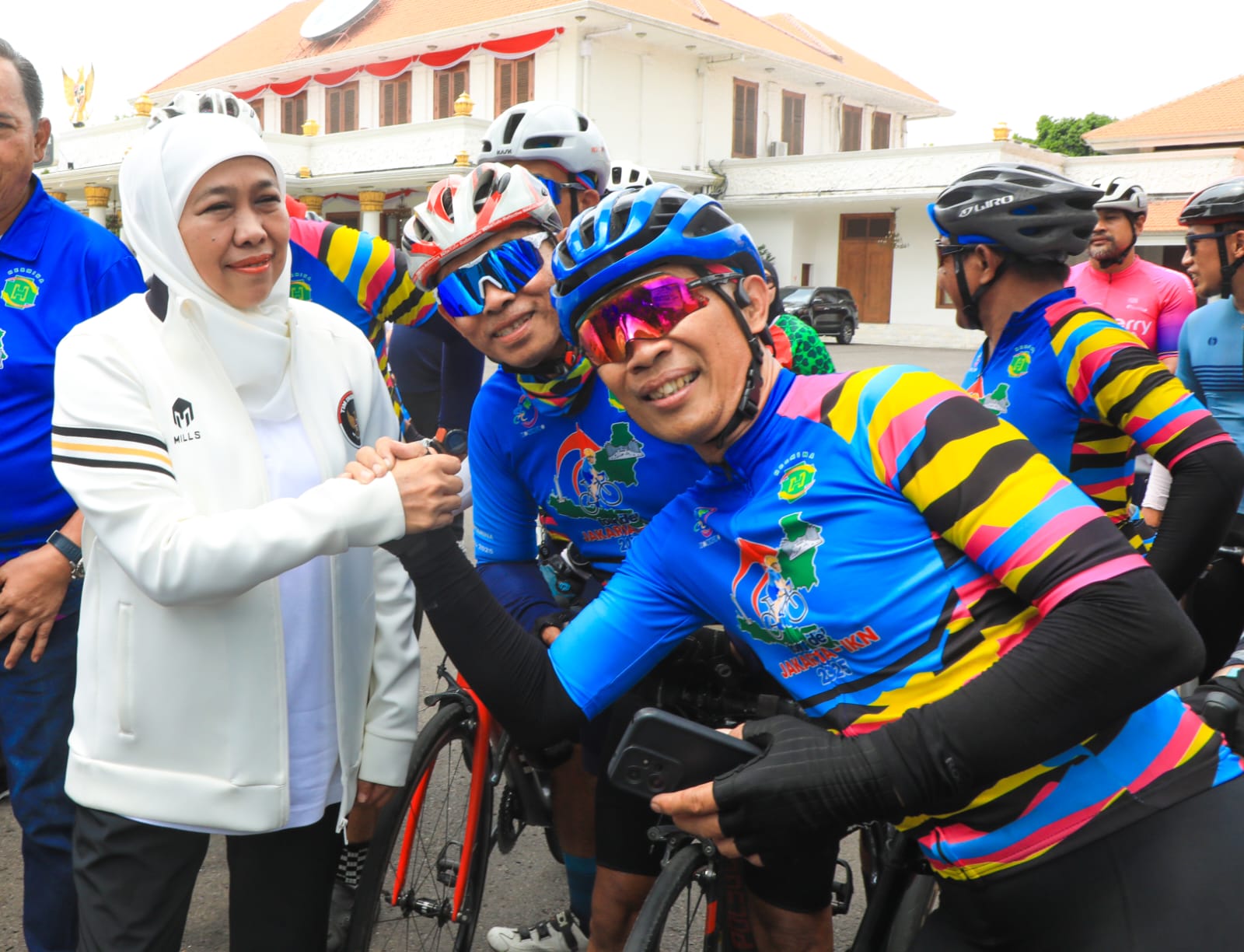 Gubernur Khofifah Kenalkan Tagline Gerbang Baru Nusantara kepada Peserta Gowes Jakarta–IKN di Grahadi