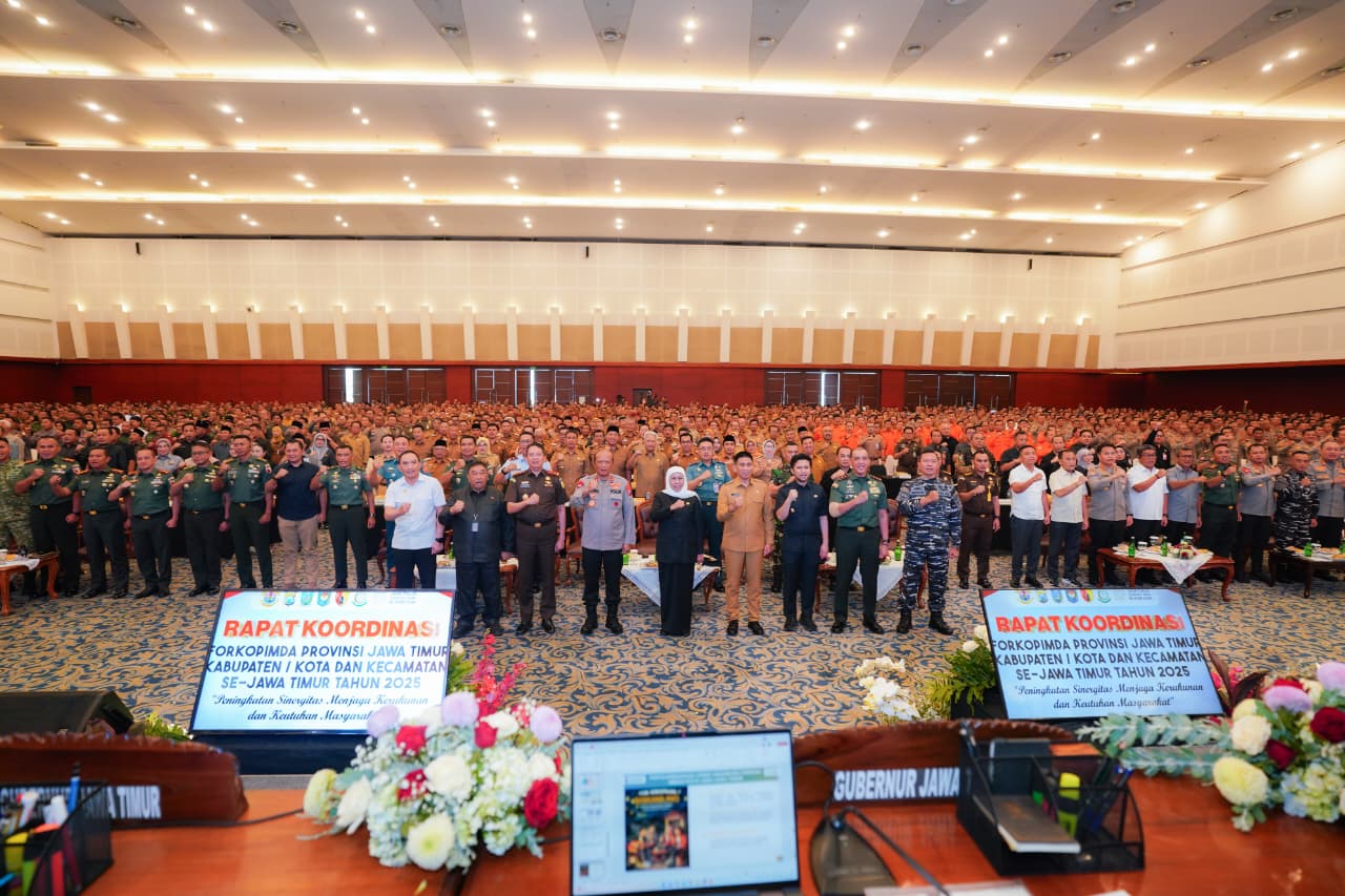 Sementara dalam paparannya, Khofifah menyampaikan kondisi demografi dan ekonomi Jawa Timur sebagai landasan penting menjaga stabilitas daerah. Jawa Timur berpenduduk 42,08 juta jiwa dengan kontribusi 14,44 persen terhadap PDB nasional dan 25,36 persen perekonomian Pulau Jawa. Pertumbuhan ekonomi Jatim Triwulan II Tahun 2025 mencapai 5,23 persen, melampaui nasional 5,12 persen.