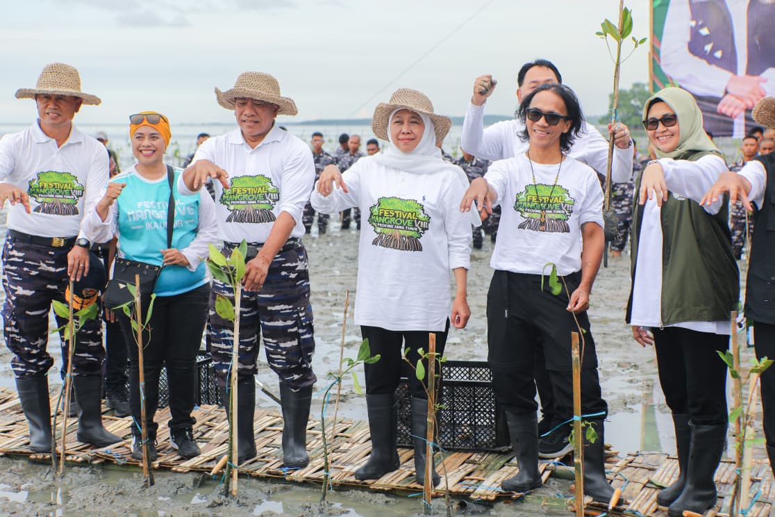 “Melalui program Mangrove Lestari, kita berkomitmen memperkuat ketahanan lingkungan dan berkontribusi nyata terhadap target Net Zero Emission 2060. Ini adalah ikhtiar Jawa Timur untuk menjaga bumi agar tetap lestari bagi generasi mendatang,” tegas Khofifah.