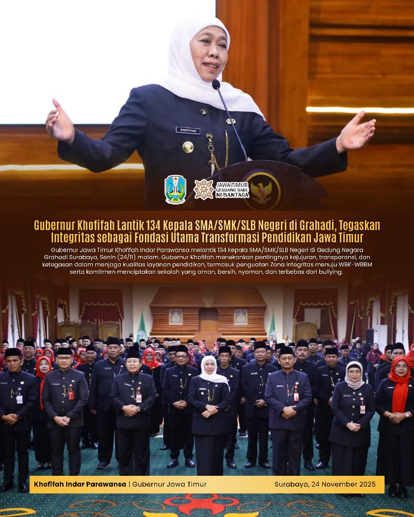 Pelantikan ini dilakukan berdasarkan Surat Keputusan Gubernur No.800/13877/204/2025 tentang Pengangkatan Guru sebagai Kepala Sekolah. Sekaligus menjadi bagian dari pembaruan manajerial di lingkungan pendidikan Jatim serta penguatan tata kelola dan percepatan layanan pendidikan.