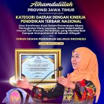 Provinsi Jawa Timur meraih penghargaan kategori Daerah dengan Kinerja Pendidikan Terbaik Nasional dari Dewan Pendidikan Provinsi Se-Indonesia 2025. Pe