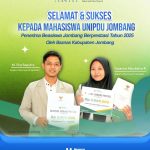 JOMBANG — Dua mahasiswa Universitas Pesantren Tinggi Darul Ulum (UNIPDU) Jombang berhasil meraih Beasiswa Jombang Prestasi Tahun 2025 yang