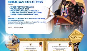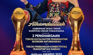JAKARTA, 2 DESEMBER 2025 – Pemerintah Provinsi Jawa Timur meraih penghargaan sebagai provinsi Penyerapan Tenaga Kerja dengan Fiskal Tinggi pada Malam Apresiasi Kinerja Pemerintahan Daerah Tahun 2025 di Hotel Borobudur Jakarta, Senin (1/12).
